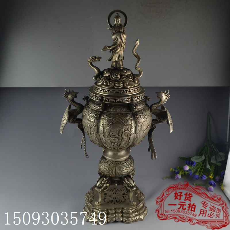 古玩銅器收藏黃銅擺件 白銅鍍銀銅器商務禮品 觀音雙鳳