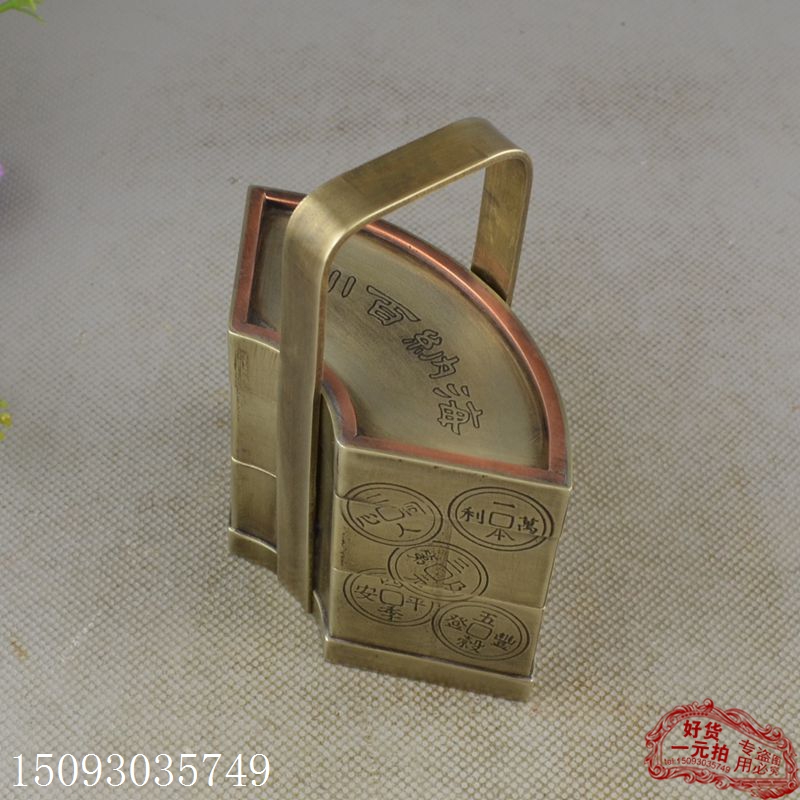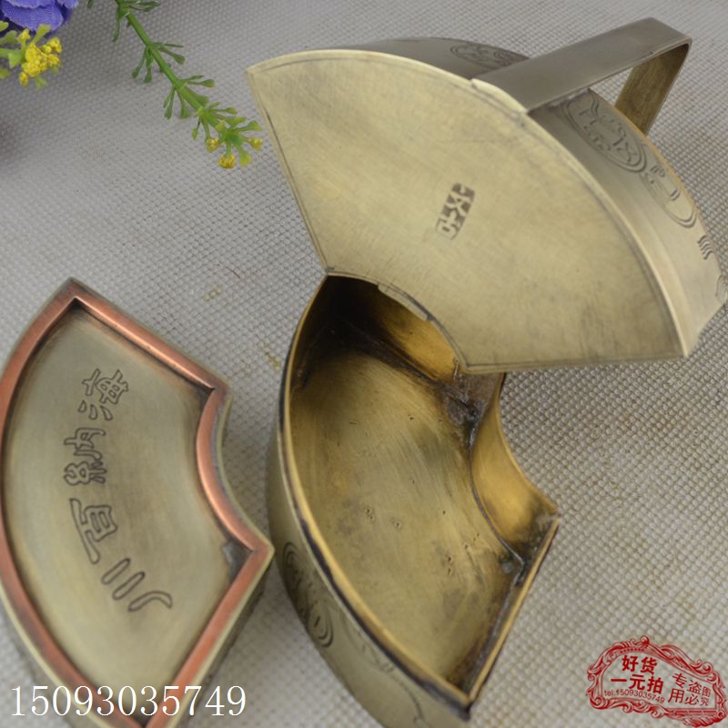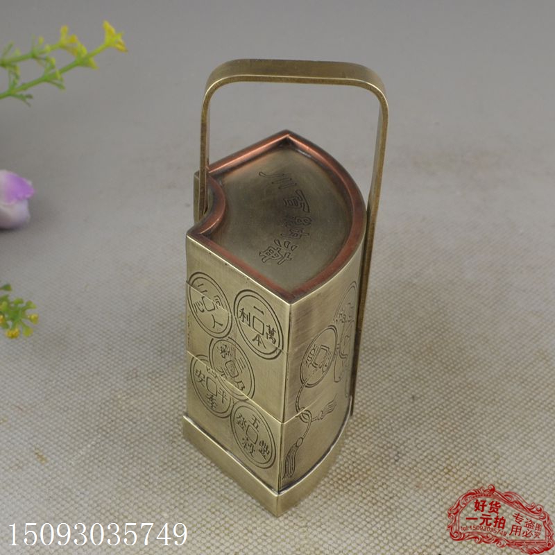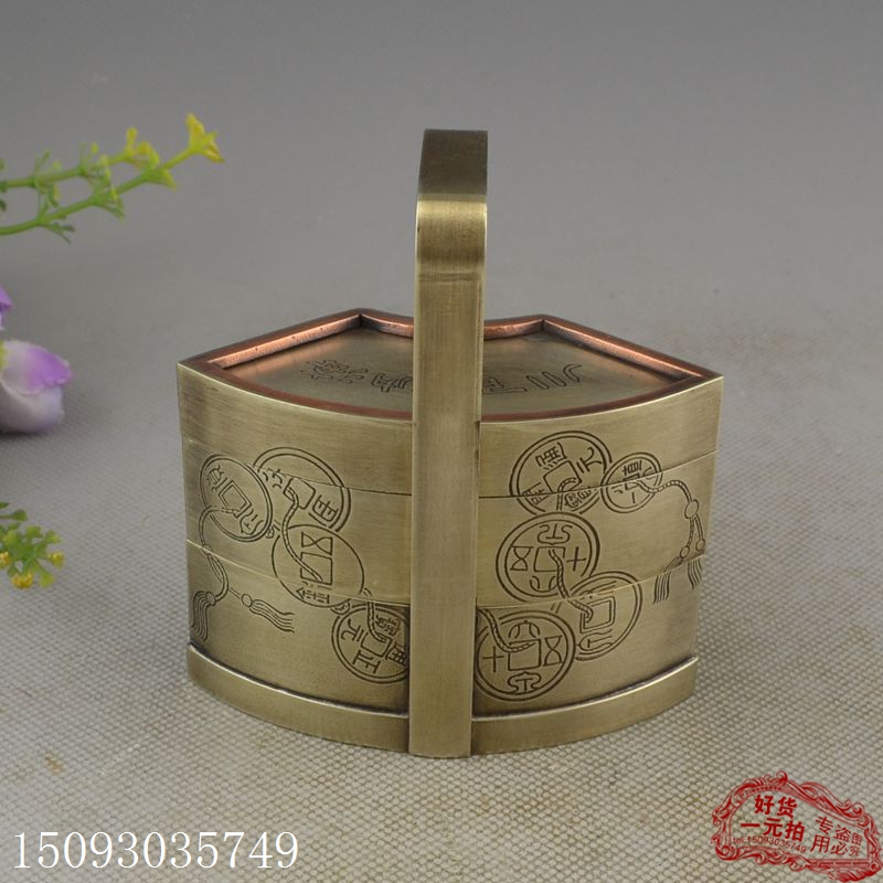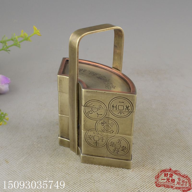 特價古玩雜項 古董收藏飯盒黃銅精品食盒擺件工藝品 扇形食盒