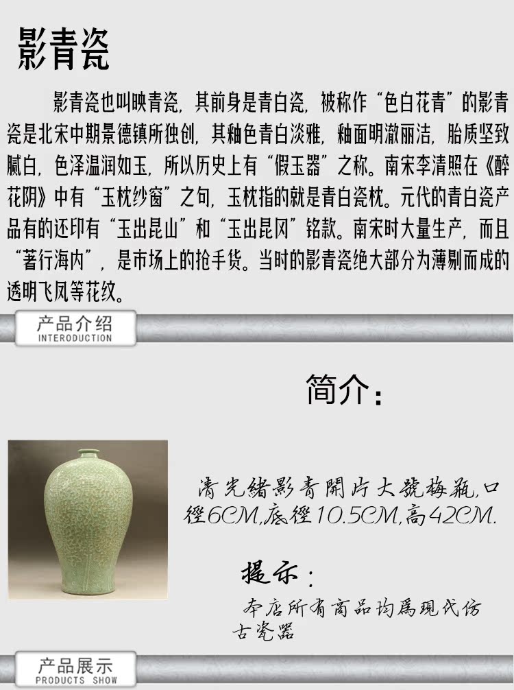 清光緒影青開片大號梅瓶古玩瓷器古董擺件仿古做舊瓷器收藏1入