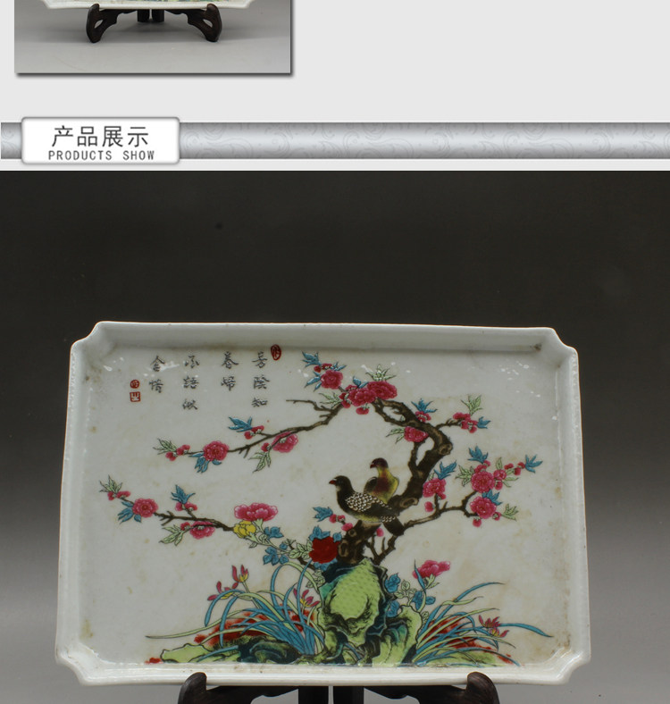 民國粉彩花鳥四方茶盤古玩瓷器老貨古董復古擺件收藏老陶瓷收藏1入