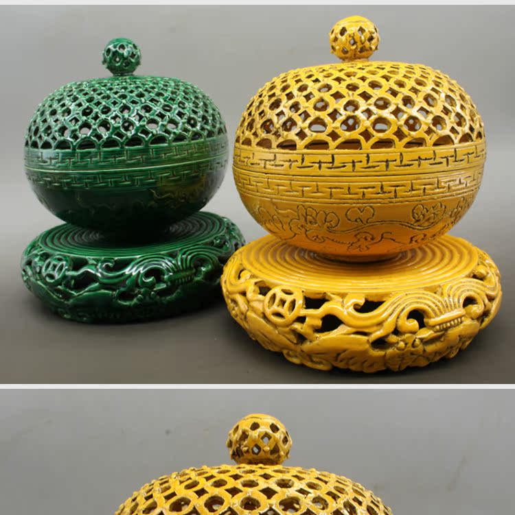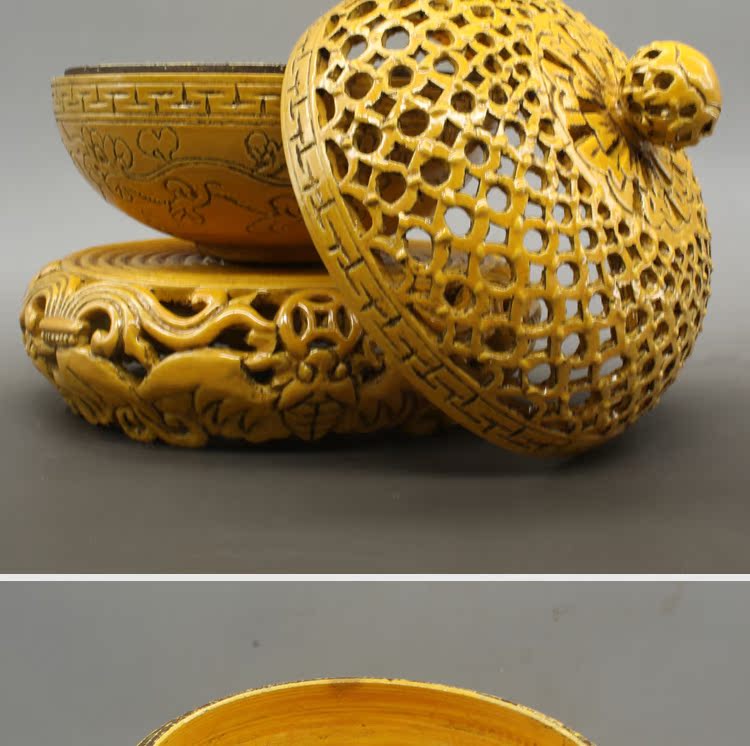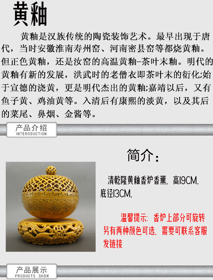 清乾隆黃釉香薰香爐古董老陶瓷古玩瓷器老貨舊貨仿古瓷器擺件收藏1入