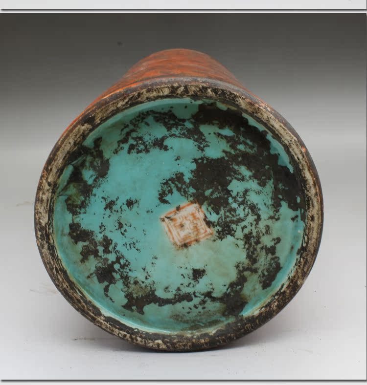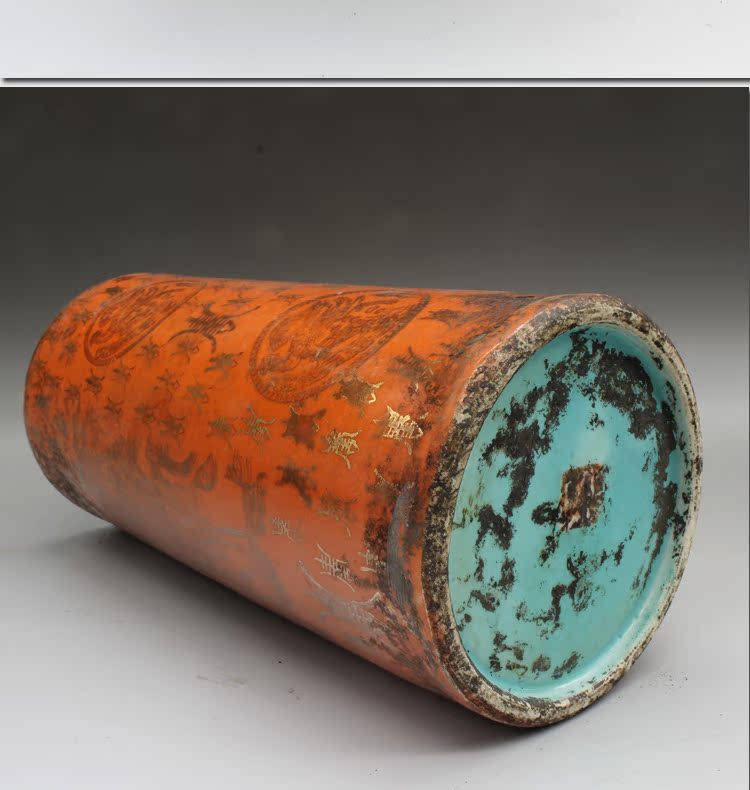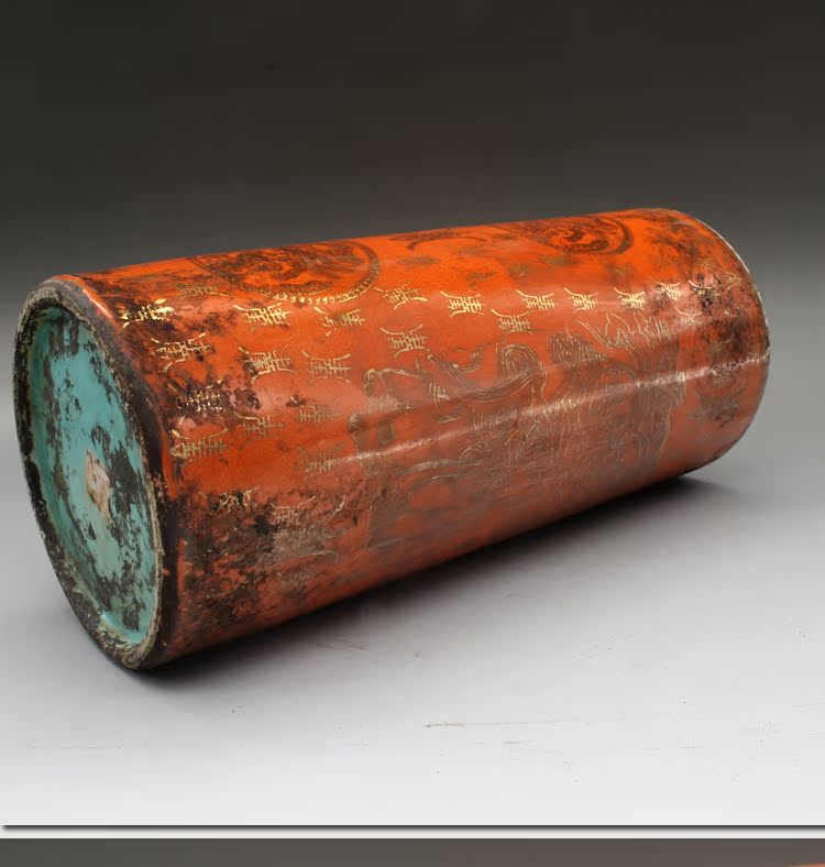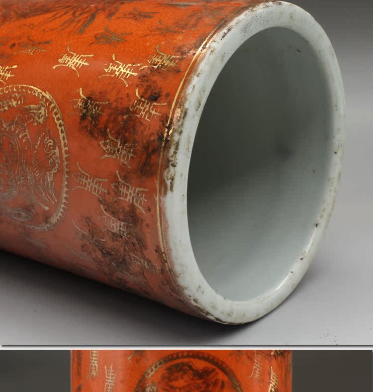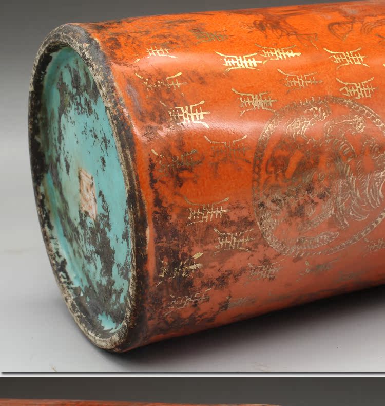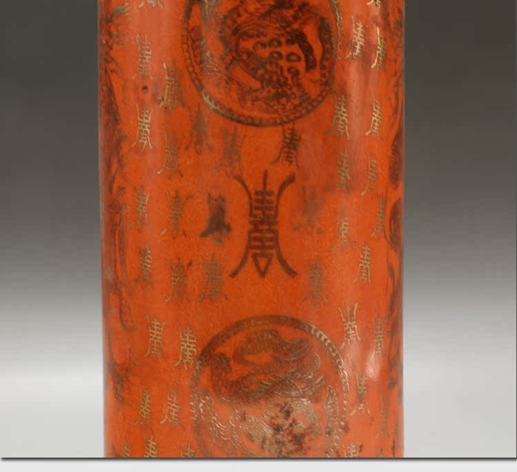 清同治礬紅壽紋帽筒(一對)古玩瓷器老貨古董老陶瓷仿古擺件收藏1入