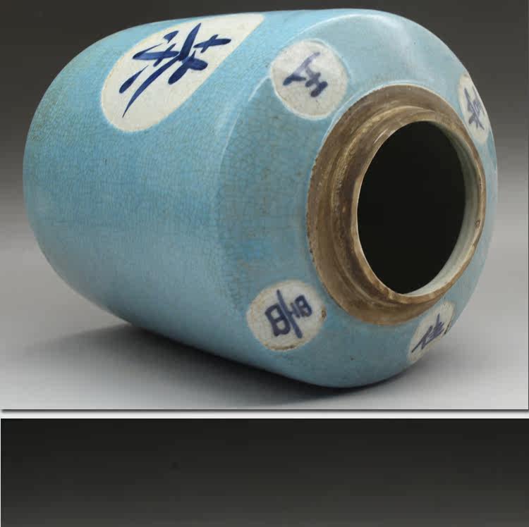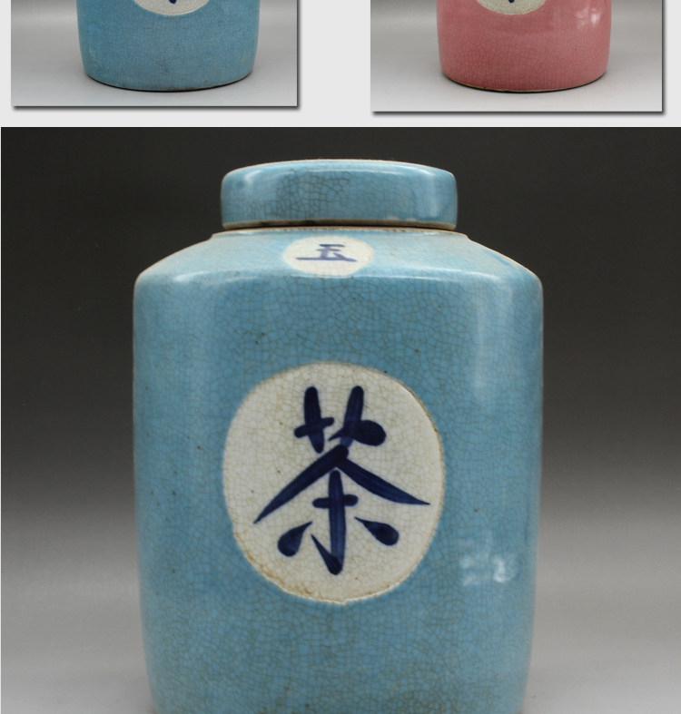 民國玉器佳堂藍釉開片超大號茶葉罐古玩瓷器古董老陶瓷擺件收藏1入