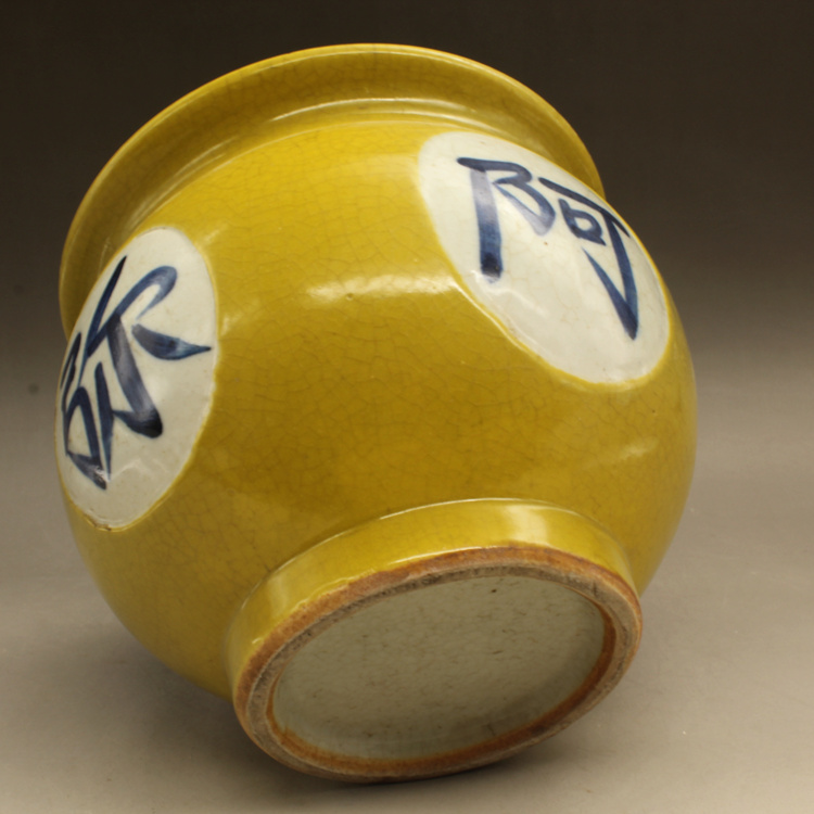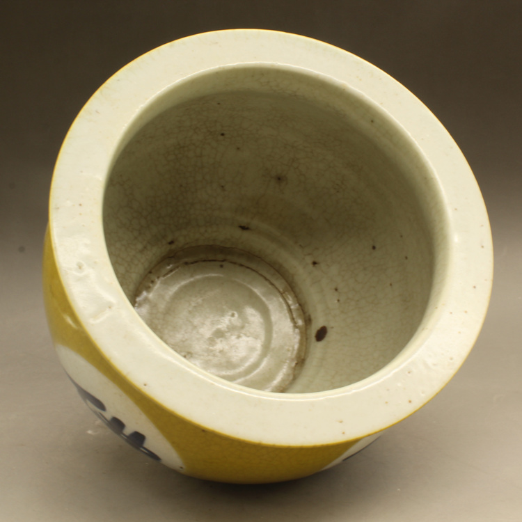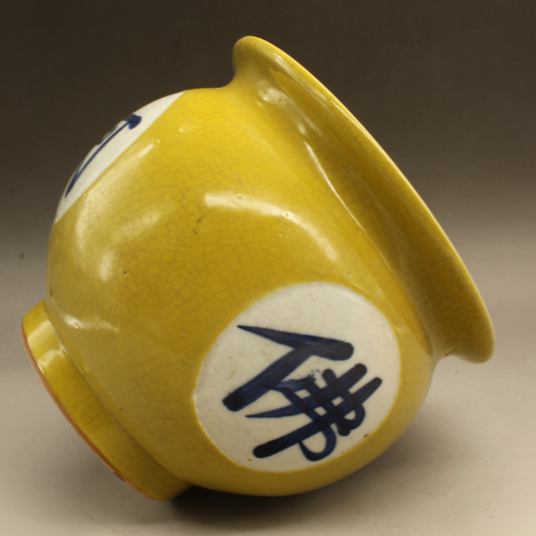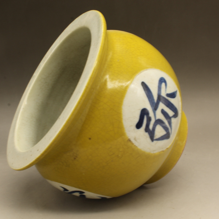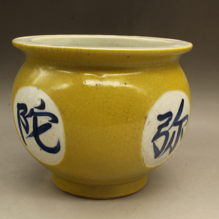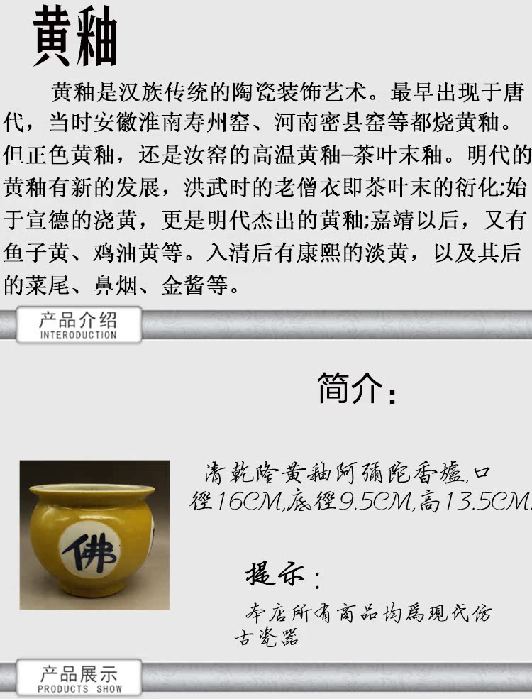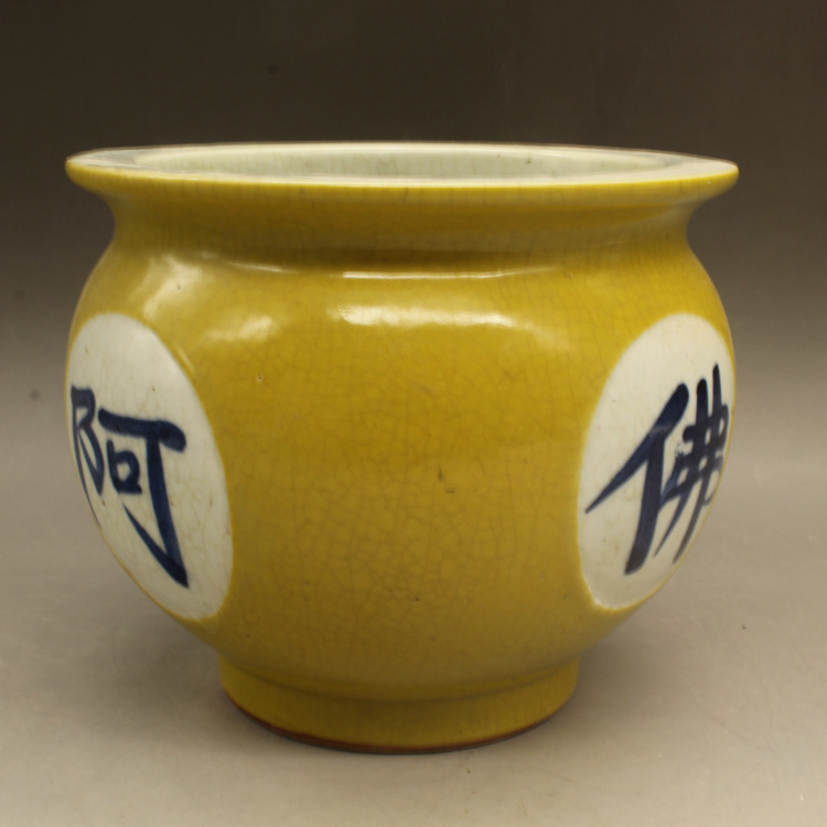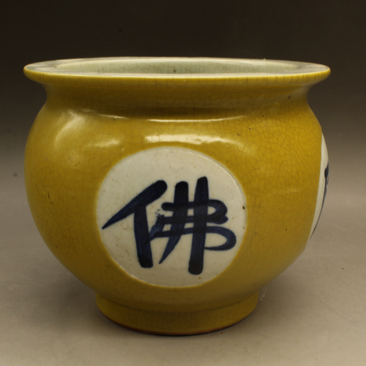 清光緒黃釉阿彌陀佛香爐古玩瓷器老貨古董老陶瓷仿古擺件收藏1入