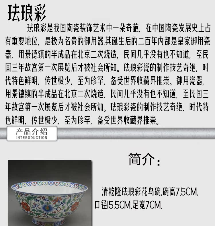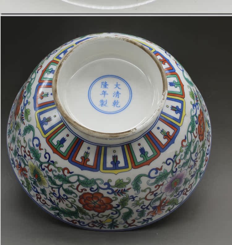 清乾隆琺瑯彩花卉碗古玩瓷器老貨古董老陶瓷舊貨擺件民間收藏品1入