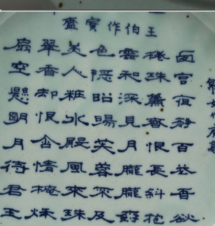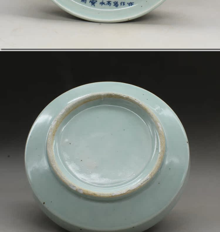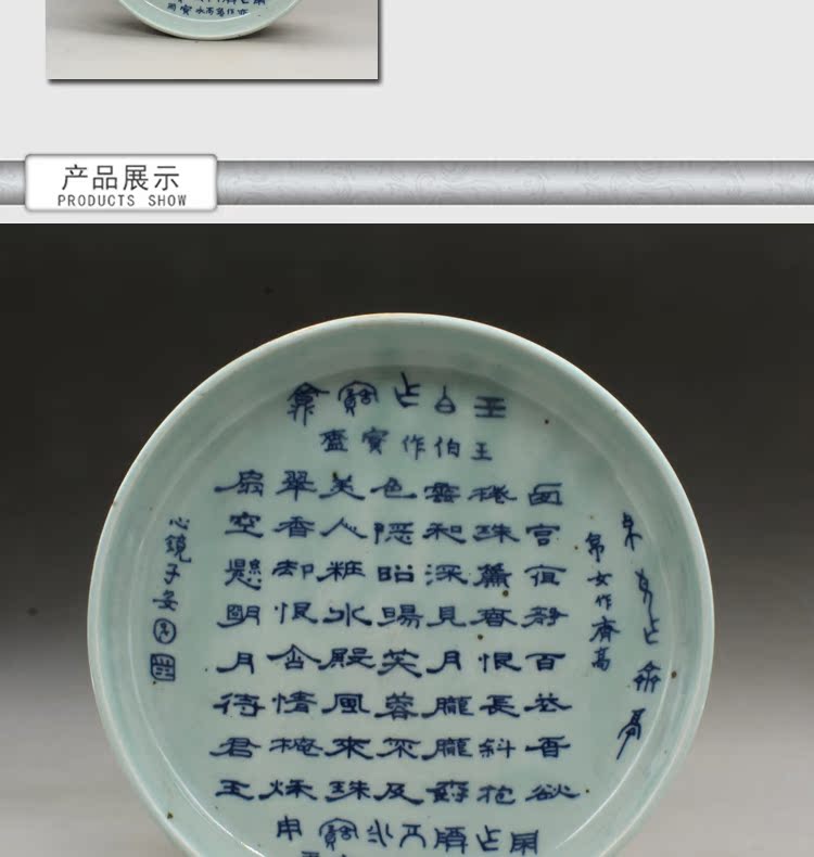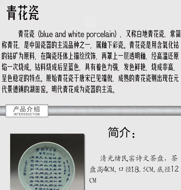 清光緒民窯青花詩文茶盤古玩瓷器老貨古董擺件收藏老陶瓷民間收藏1入