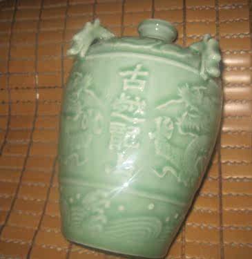 龍泉弟窯龍潭.高約18厘米.直經約12厘米.龍耳兩斤酒壇.