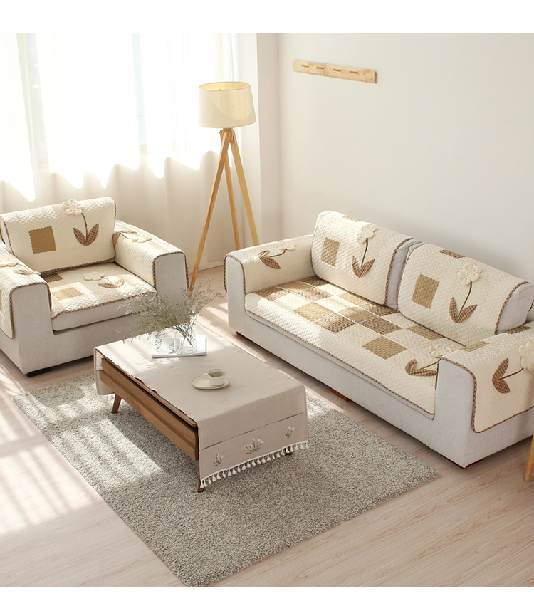 冬季沙發墊防滑布藝田園四季通用簡約現代沙發巾沙發套客廳坐墊1入