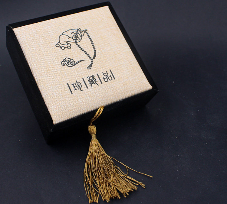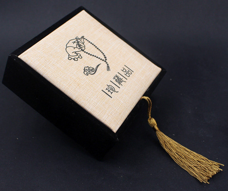 【寶貝名稱】:流蘇佛珠盒密度板麻布面 黑色底為絨布