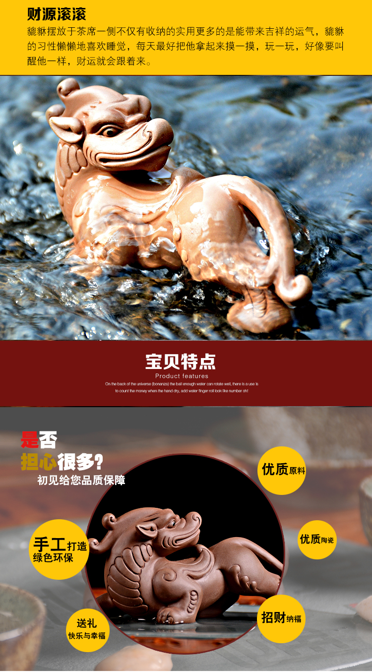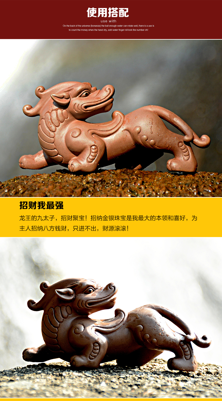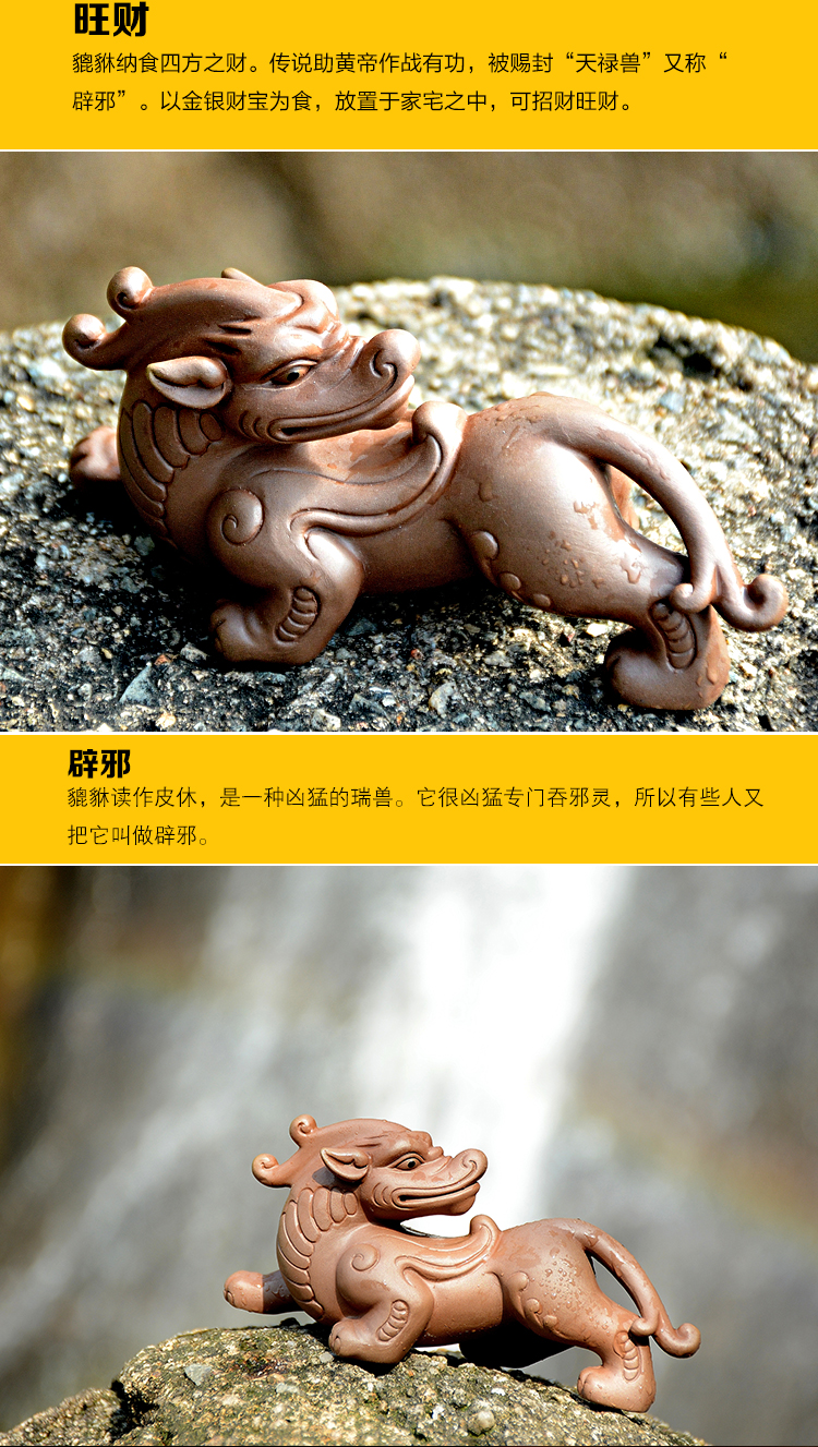 回頭貔貅紫砂茶寵闢邪擺件茶具茶道配件家居手工工藝品