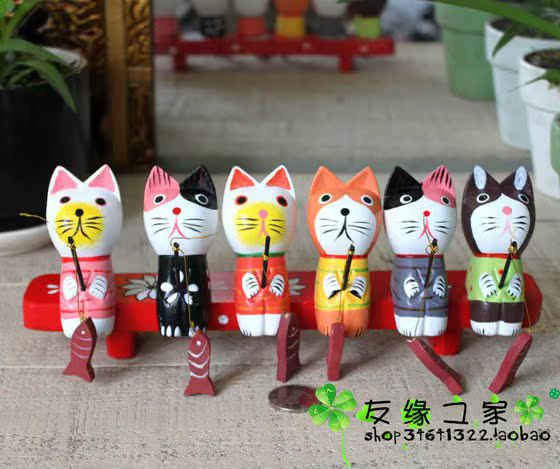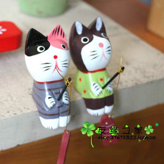 特價木雕擺件家居工藝品擺件手工長凳釣魚大號招財貓開業擺件0.3