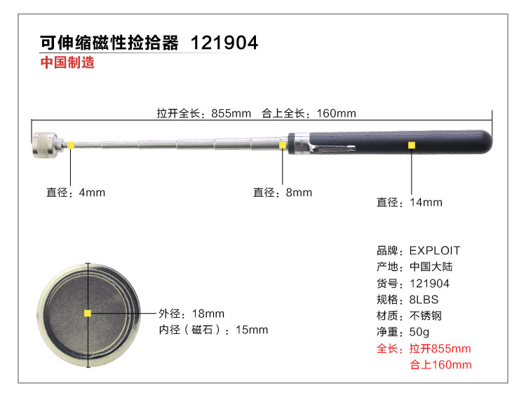 開拓EXPLOIT 磁性可伸縮撿拾器 螺絲收集器 電腦 維修 工具121904