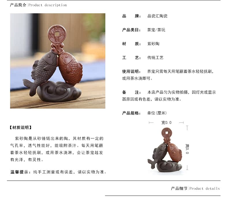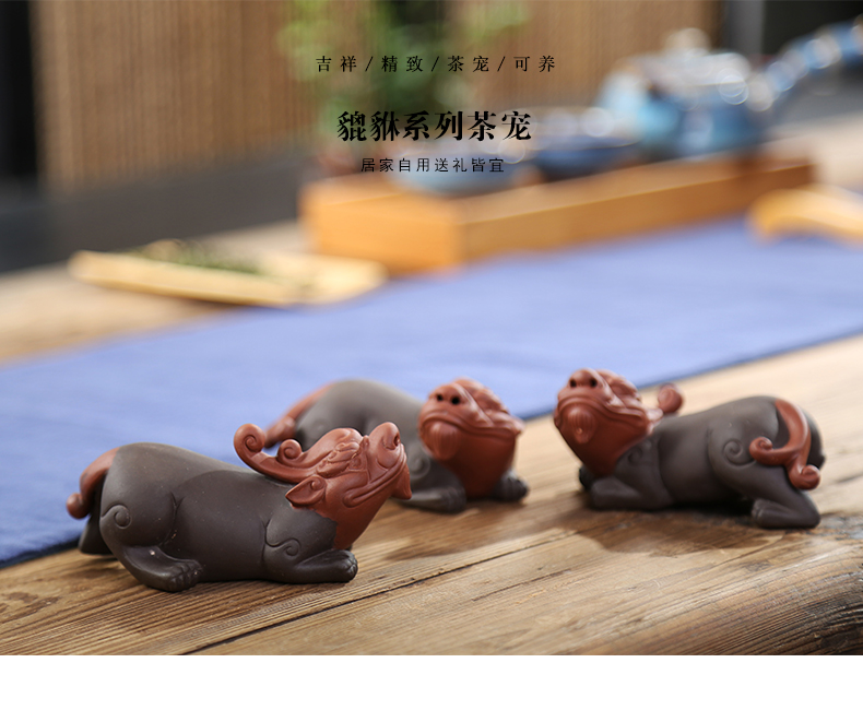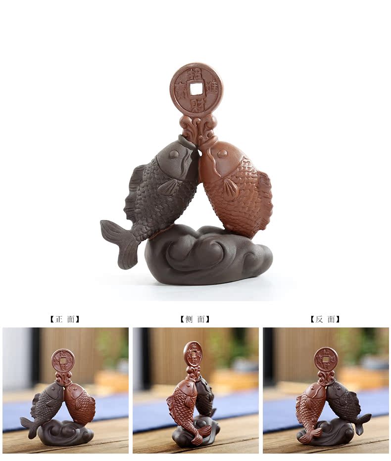 品瓷彙吉祥神獸貔貅紫砂陶茶寵擺件 招財魚陶瓷可養茶道配件