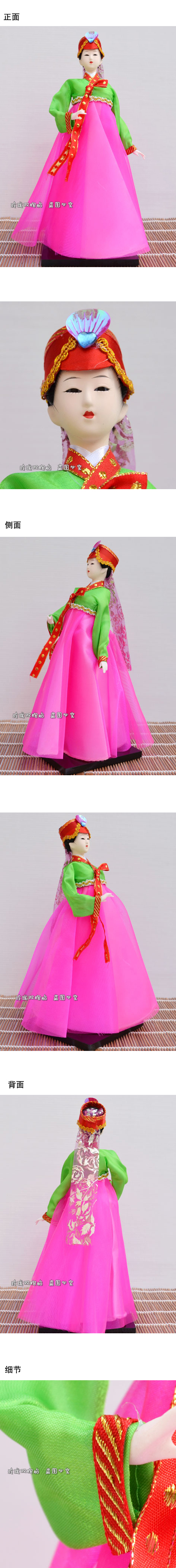 | 本公司大部分商品6一10天到貨。不接急單。急單的客戶請不要下單。感謝諒解與合作! 名稱:精品韓國絹人娃娃 尺寸:卡通人偶30CM高,因人偶頭發有高低,相差2CM正常 材質:絲綢綢緞布料、泡沫模型身體、頭為石膏,頭發為棉線 產品介紹:娟人身體主要由高級泡沫壓塑而成,人物臉部由石膏牛骨粉制作,人物頭發由仿真棉質頭發盤成發髻,衣服由絲綢綢緞布料裁剪而成。每尊絹人均配以各種小道具如小傘、小手鼓等,朋友生日,結婚禮物,喬遷搬家、商務禮品,韓國料理餐廳裝修,韓式風格裝修等等都是非常合適。 包裝:普通紙盒包裝 寶貝保養 產品展示