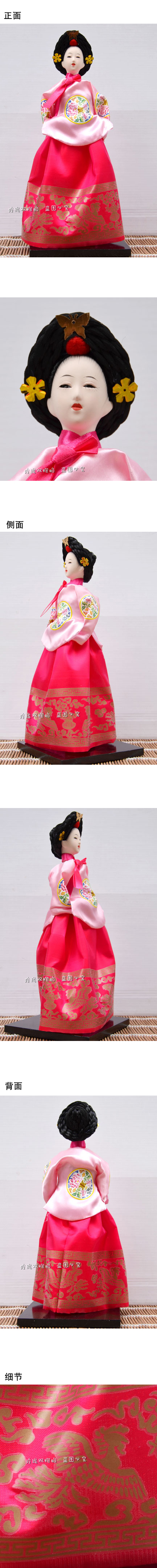 | 本公司大部分商品6一10天到貨。不接急單。急單的客戶請不要下單。感謝諒解與合作! 名稱:精品韓國絹人娃娃 尺寸:卡通人偶30CM高,因人偶頭發有高低,相差2CM正常 材質:絲綢綢緞布料、泡沫模型身體、頭為石膏,頭發為棉線 產品介紹:娟人身體主要由高級泡沫壓塑而成,人物臉部由石膏牛骨粉制作,人物頭發由仿真棉質頭發盤成發髻,衣服由絲綢綢緞布料裁剪而成。每尊絹人均配以各種小道具如小傘、小手鼓等,朋友生日,結婚禮物,喬遷搬家、商務禮品,韓國料理餐廳裝修,韓式風格裝修等等都是非常合適。 包裝:普通紙盒包裝 寶貝保養 產品展示
