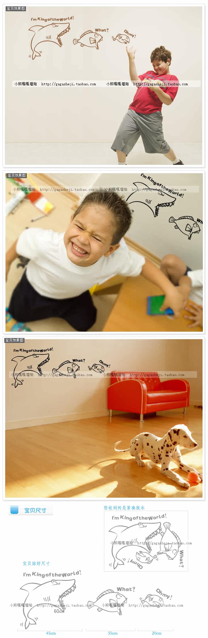 鯊魚 小動物大魚吃小魚兒童房教室布置墻貼紙墻貼畫自粘紙