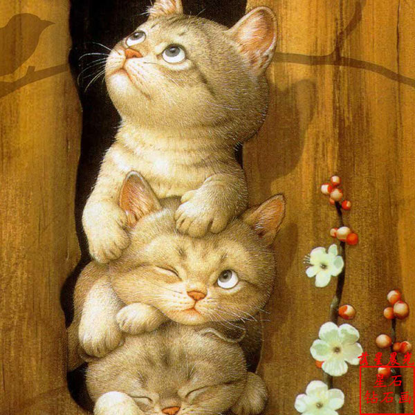 diy鉆石畫寵物三只小貓方鉆滿鉆貼鉆畫鉆石繡新款十字繡客廳 AAA