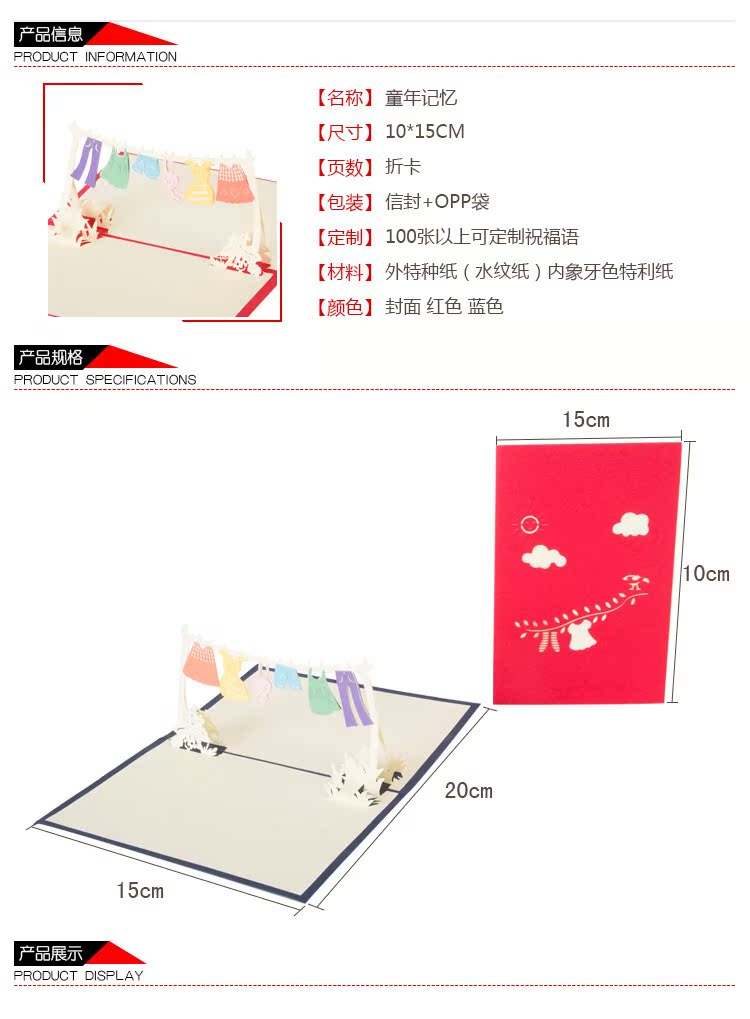 創意手工制作立體賀卡 紙雕/剪紙藝術 生日節日祝福卡片 童年
