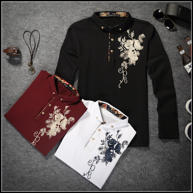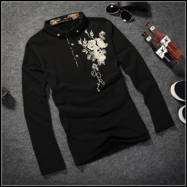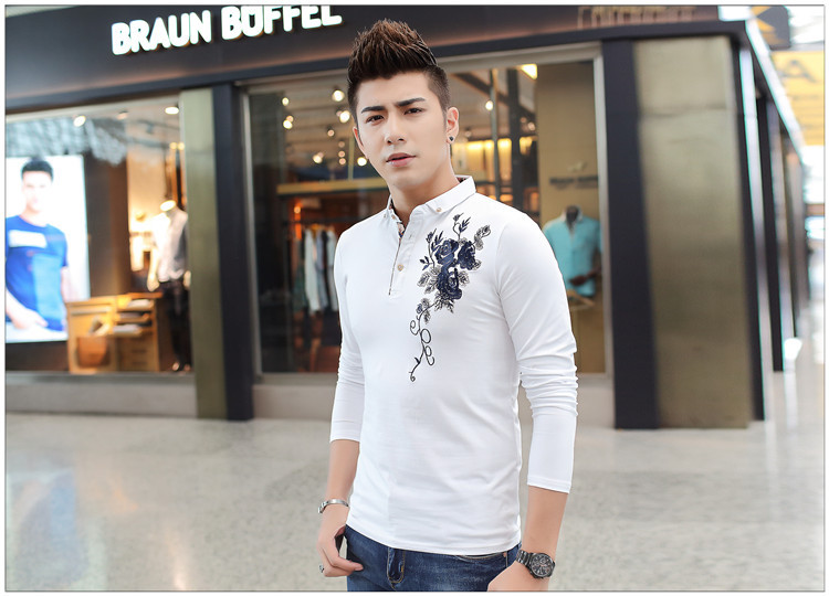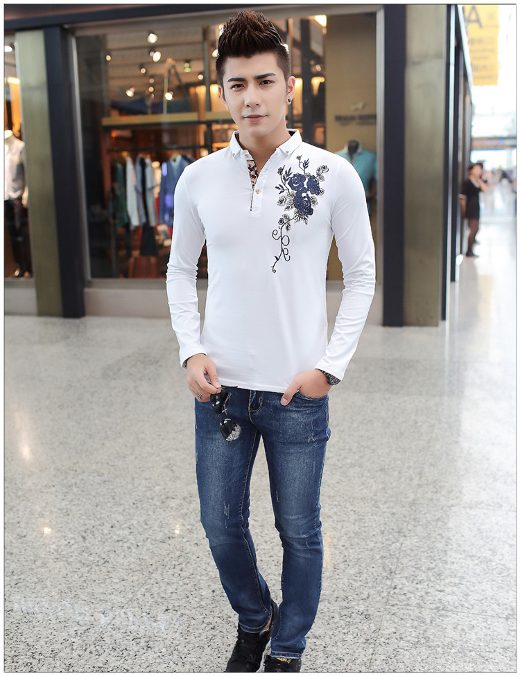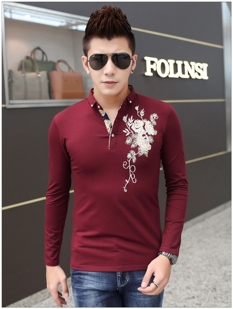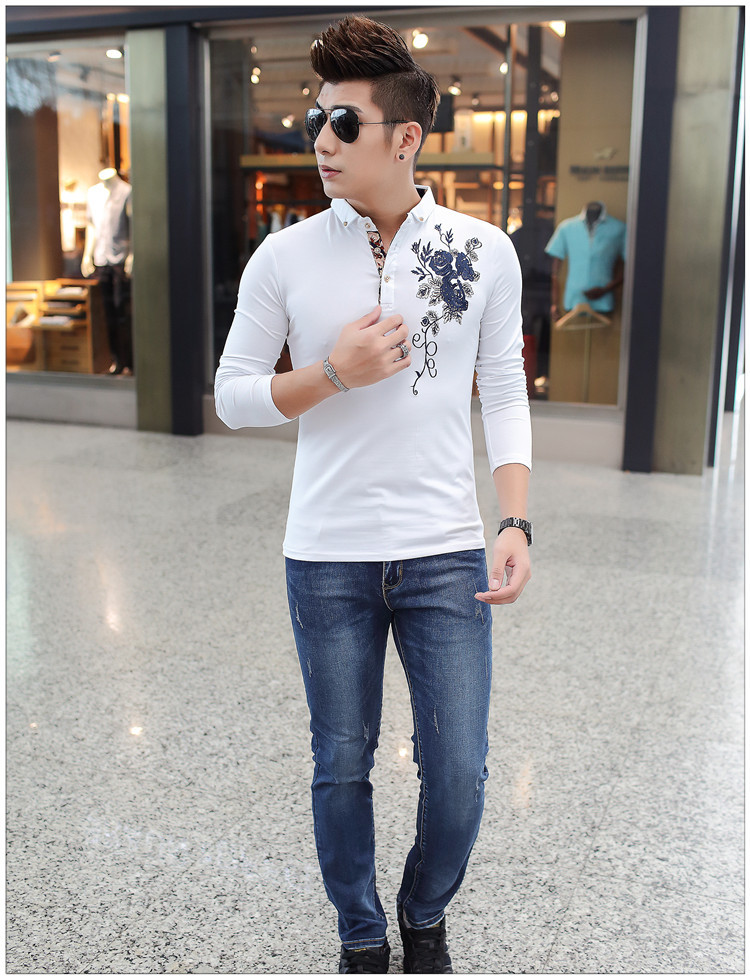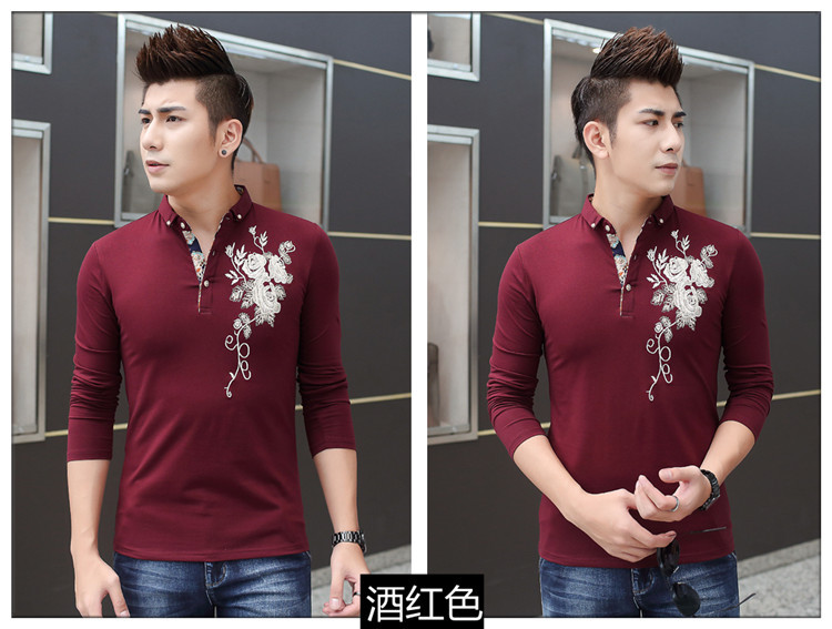 長袖修身嘎哩嘎雷男士男裝純色條紋打底衣服新款品質小翻領衫