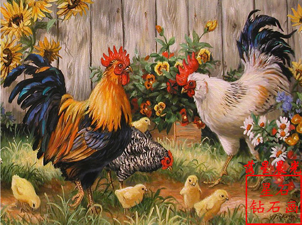 diy鉆石畫新款十字繡鉆石繡方鉆滿鉆公雞母雞圖客廳貼鉆畫 AAA
