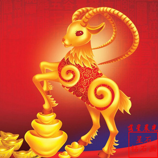 diy鉆石畫新款十字繡鉆石繡方鉆滿鉆生肖羊年發財貼鉆畫客廳 AAA
