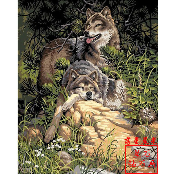 diy鉆石畫貼鉆畫鉆石繡十字繡動物森林狼方鉆滿鉆圓鉆客廳 AAA