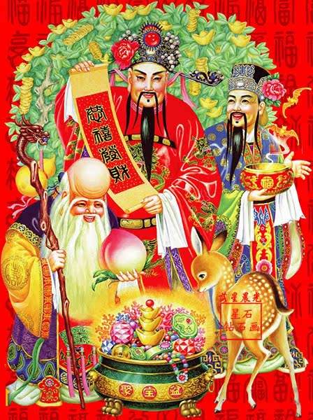 diy鉆石畫貼鉆畫客廳十字繡鉆石繡財神到福祿壽三星方鉆滿鉆 AAA