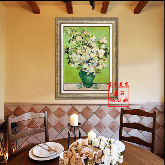 diy鉆石畫梵高白玫瑰油畫鉆石繡3d十字繡方鉆滿鉆客廳貼鉆畫 AAA