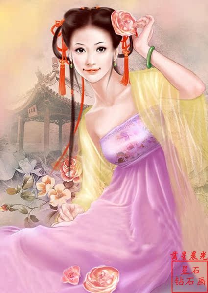 diy鉆石畫客廳貼鉆畫古風鮮花佳人新款十字繡鉆石繡方鉆滿鉆 AAA