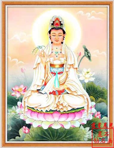 diy鉆石畫客廳裝飾畫鉆石繡十字繡佛像坐蓮觀音菩薩方鉆滿鉆 AAA