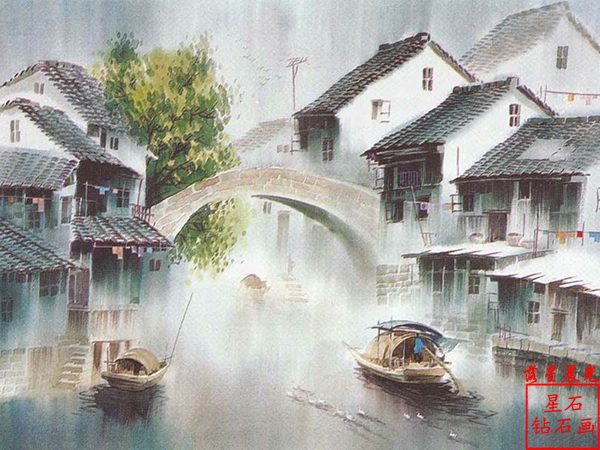 diy鉆石畫客廳貼鉆畫夢里水鄉江南風景方鉆滿鉆十字繡鉆石繡 AAA