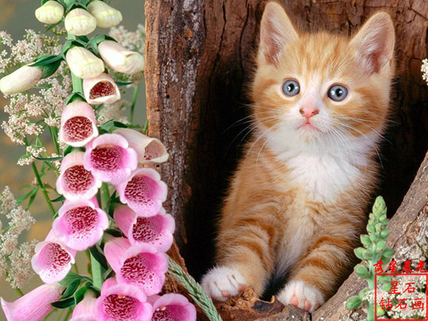 diy鉆石畫花卉呆萌可愛小貓鉆石繡十字繡貼鉆畫客廳方鉆滿鉆 AAA
