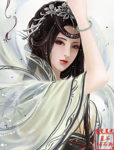 diy鉆石畫古風人物唯美白淺方鉆滿鉆十字繡鉆石繡貼鉆畫客廳 AAA