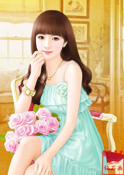 diy鉆石畫方鉆滿鉆玫瑰少女云嫣貼鉆畫鉆石繡十字繡客廳臥室 AAA