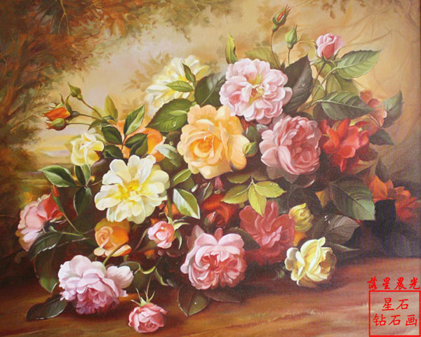 diy鉆石畫方鉆滿鉆古典花卉玫瑰油畫貼鉆畫鉆石繡十字繡客廳 AAA