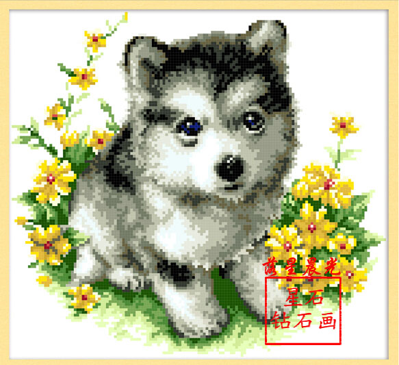 diy鉆石畫 新款十字繡方鉆滿鉆貼鉆畫鉆石繡哈士奇狗狗客廳 AAA