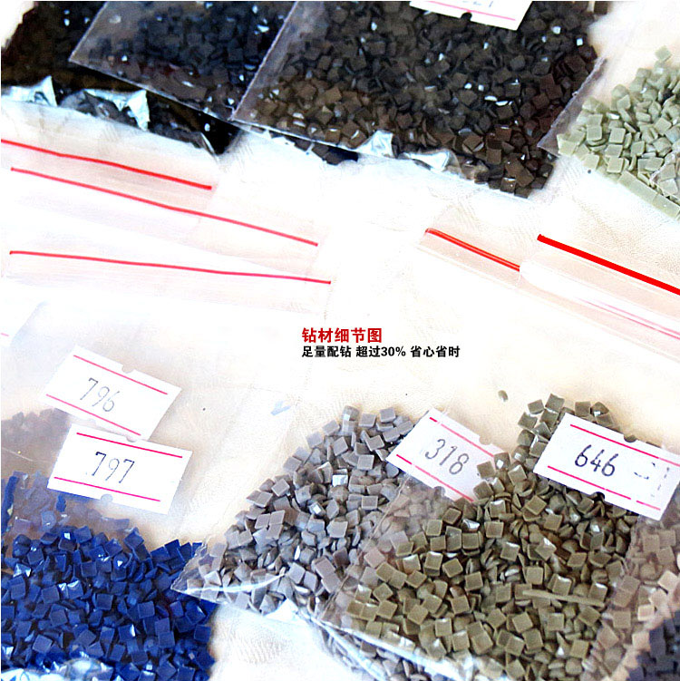 DIY鉆石畫特價韓國婚禮 樹脂鉆方鉆 特價包郵! 實際尺寸:26*24cm 裝裱完成尺寸39*37cm裝裱尺寸可根據實際需要要求裝裱 示例圖“韓國婚禮” 粘制完后裁掉四邊空白即可拿去裝裱店拼接表框,因采用紙質較硬的相紙無需留出一 行,示例無縫對接注:相紙背面無膠,拼接任務可由裝裱店完成。 表框:待貼好所有鉆石以后,把每張A4紙邊框外多余的空白部分裁剪掉。即可拿去裱框店拼接表框。 裝裱小知識:一米以下,上下左右各加5.5cm 卡紙。一米到一米五之間左右各加8cm,上下加5.5cm 卡紙。一米五以上左右加8-12cm,上下加5-8cm卡紙。畫框寬窄根據畫的實際需要而定。 鉆質和色彩展示:顏色正且鮮艷,鉆質好殘鉆相當少。 向日葵頭 30*28cm