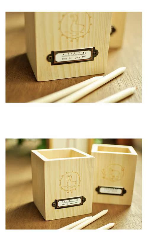 林間小動物實木筆筒