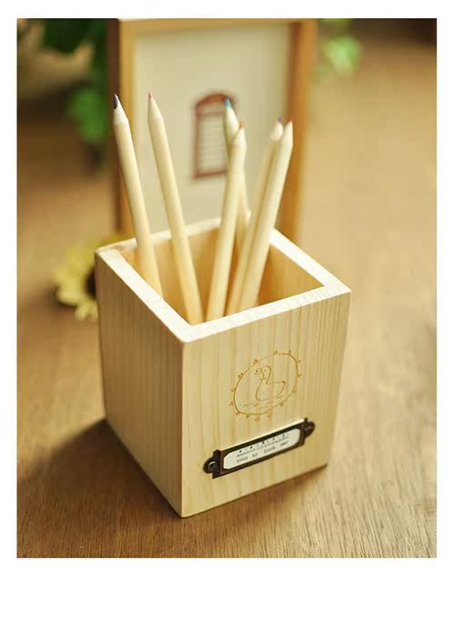 簡約原木筆筒 創意木質時尚文具收納整理擺件 林間小動物