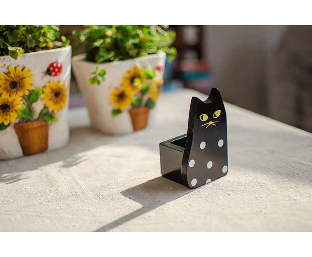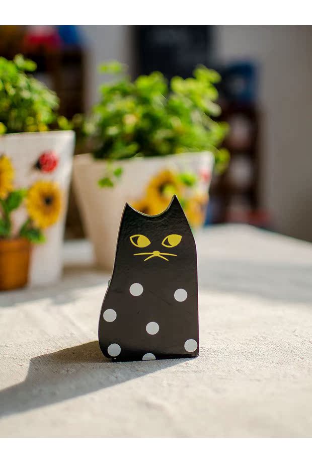 zakka雜貨 木質小貓筆筒 家居裝飾擺件 拍攝道具