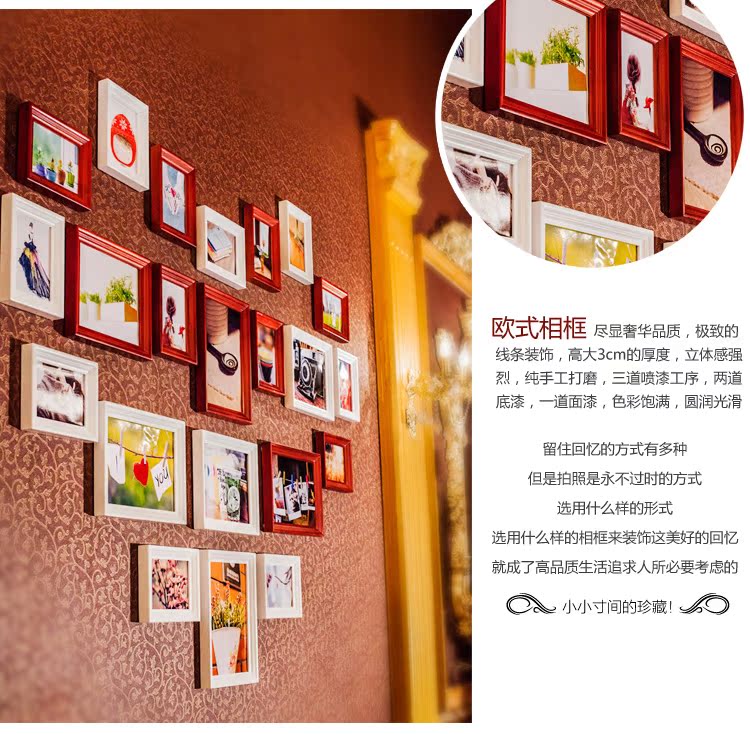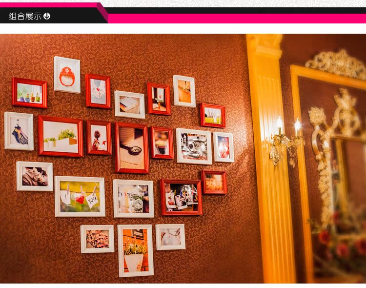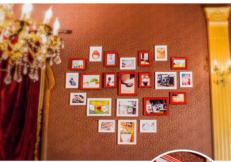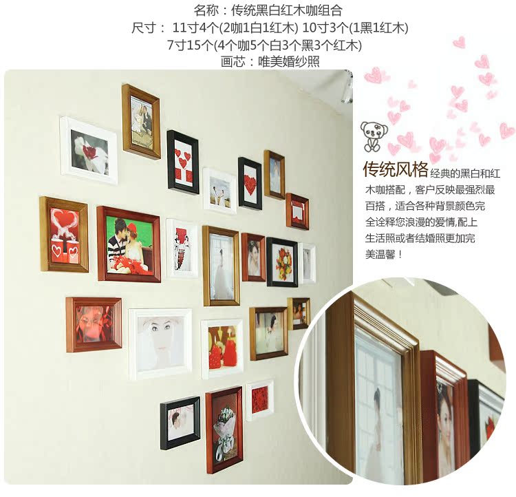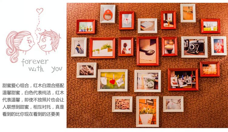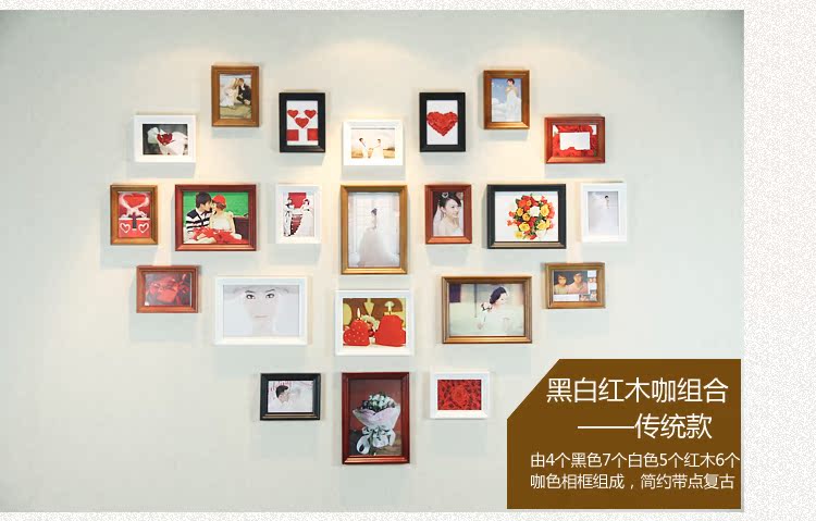 高檔歐式實木照片牆心形相片牆相框創意組合實木相框牆22A1