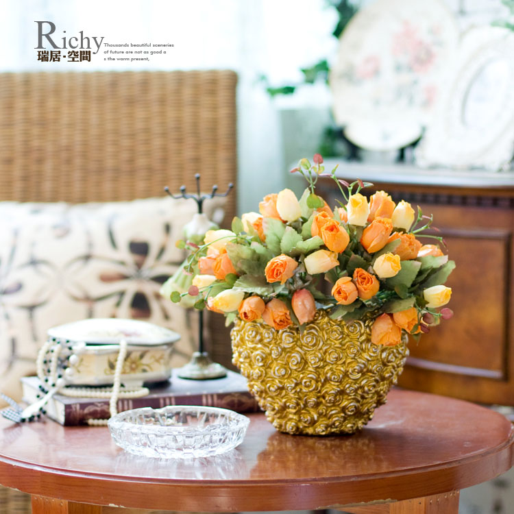搭配桌擺GOLEDENROSE玫瑰浮紋花插