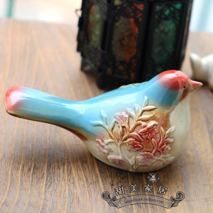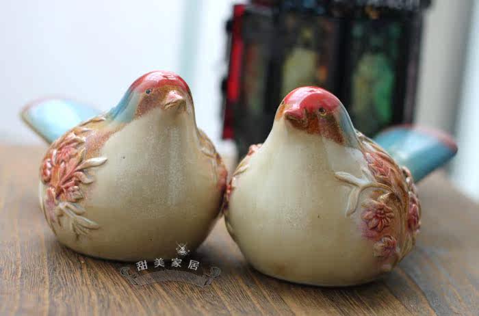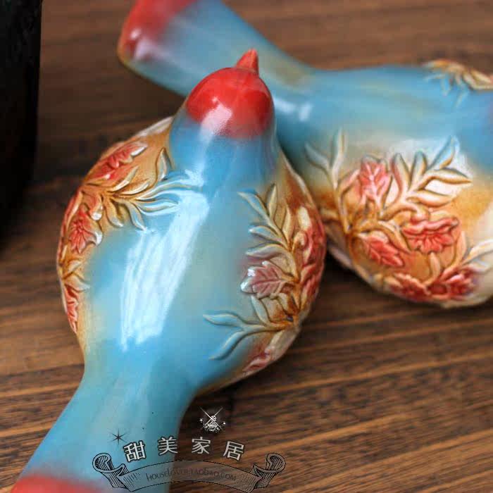 歐式家居擺設裝飾品擺件 高溫釉變陶瓷擺設庭院家居裝飾 彩繪小鳥