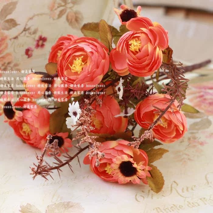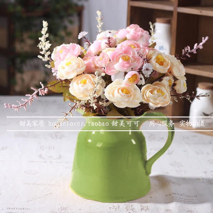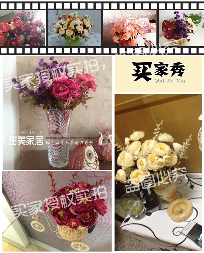 活動說明:使用購物車拍下哦 系統自動減 尺寸:7頭7 1朵大花 2個花苞 8朵小白花 四個花粉樹枝 組成一束 一束價格僅需8.999花朵平均一朵直徑5~5.5厘米 整體長度27~30厘米 高的花瓶內擺放了三支 矮花瓶內擺放了一支 咖啡色桶里面有粉色的是放的4個 只有香檳色的是放的3個花瓶店內另有售 單獨拍攝的都是一支的效果 此款是可可家獨家定制款哦 價格:8.999 最愛的花朵 拍出來真的說實話太漂亮了 以至于這個光挑選圖片就花了一個小時 把拍的特別漂亮的照片都刪掉了· 為的是把最接近實物的效果展現給大家。真的灰常灰常灰常美 腫么搭配 放在那里都漂亮!反正就是漂亮你讓我形容好壞?就是好·可可剛剛開始賣仿真花 從小花開始堅持的原則就是質量好 高仿真 同檔次物品價格最低 這個不會讓您失望的!贊