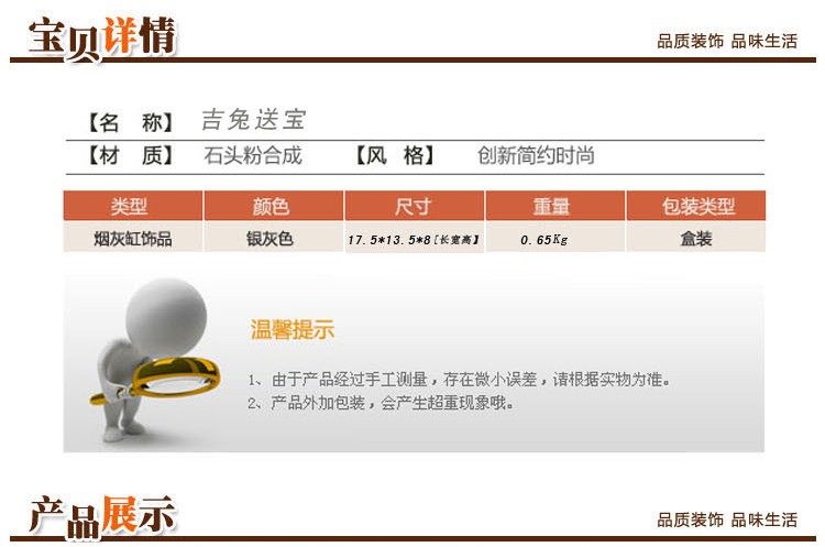 吉兔送寶煙灰缸創意時尚個性煙缸家居小擺設生肖兔生日禮物