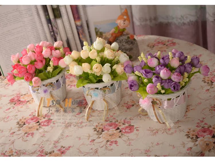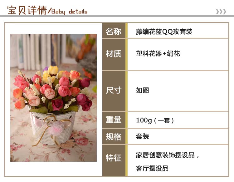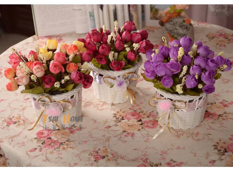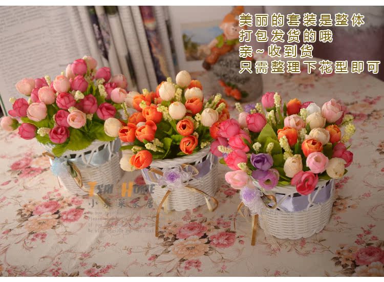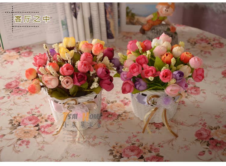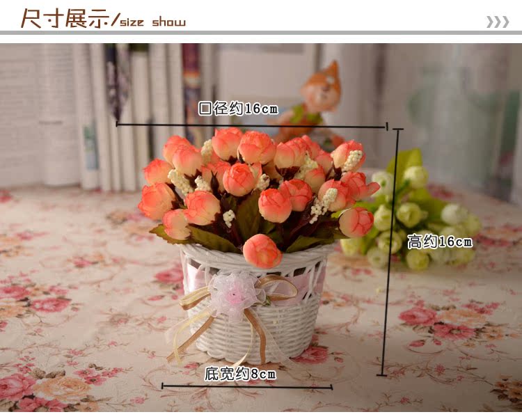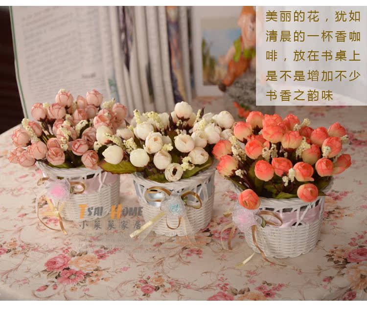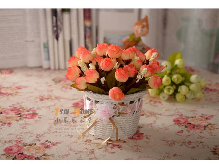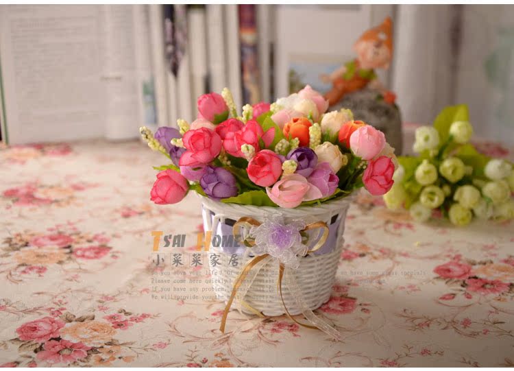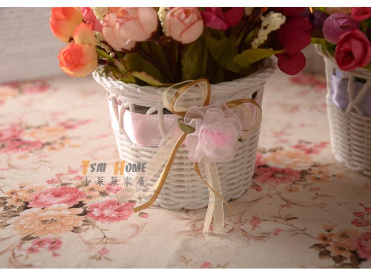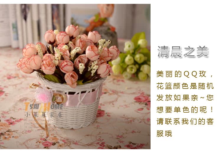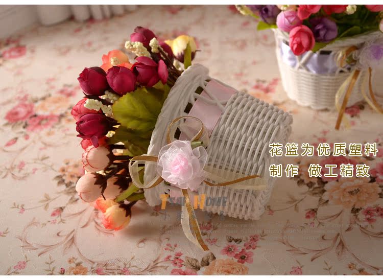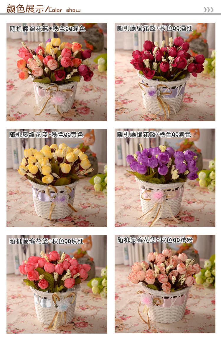 藤編花籃QQ小玫瑰苞茶玫 仿真花絹花假花干花插花擺放花藝 特價