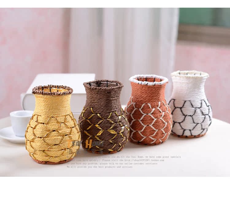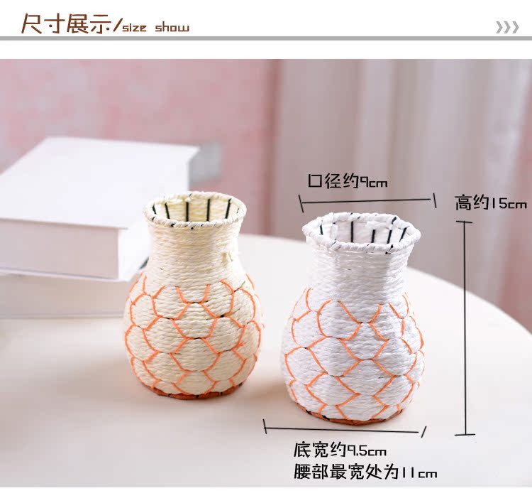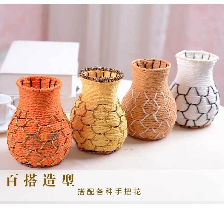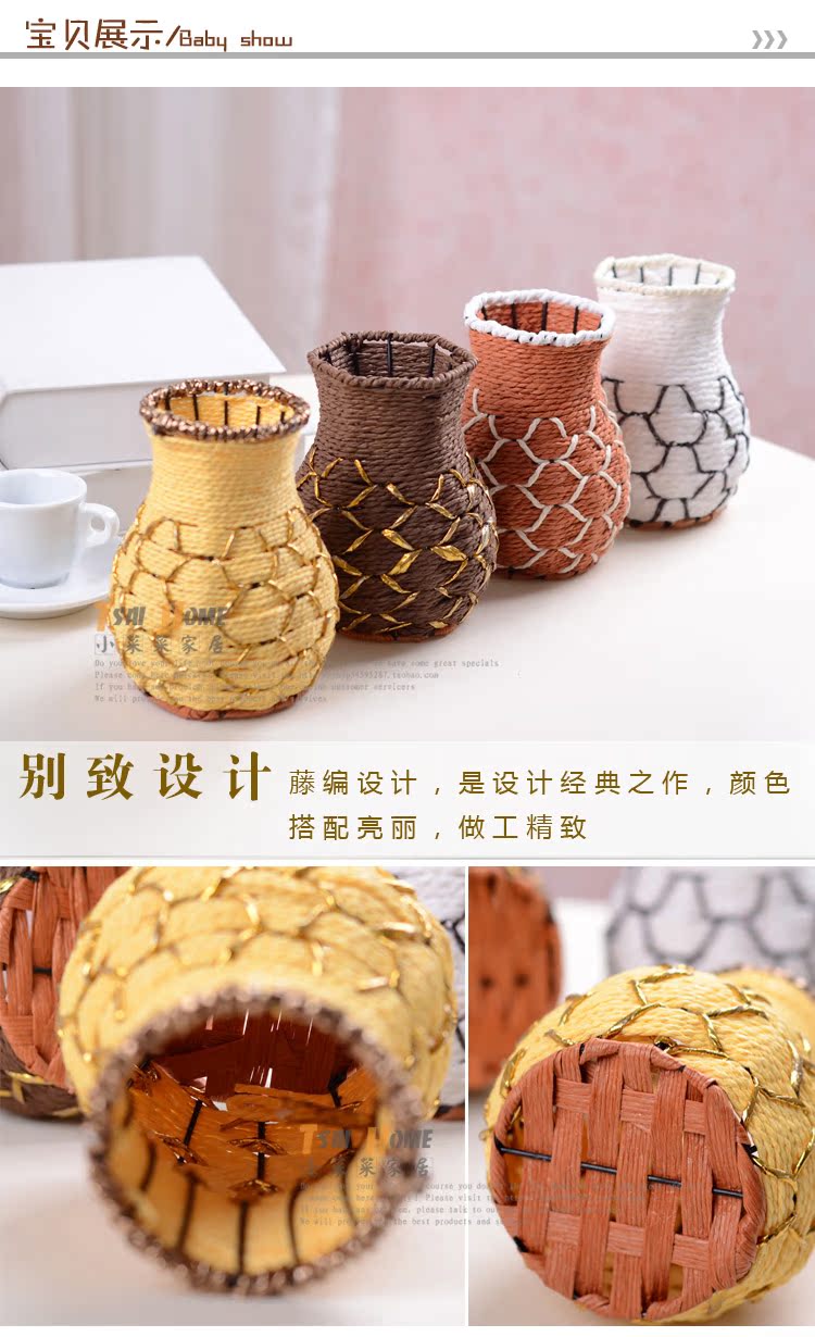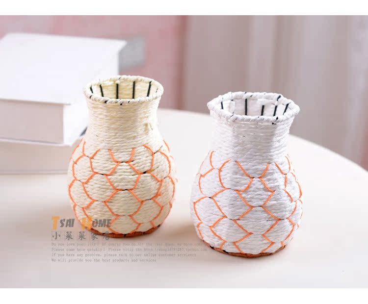 藤編魚簍花器花瓶可愛花簍家居擺設仿真花花具裝飾品 插花工藝品