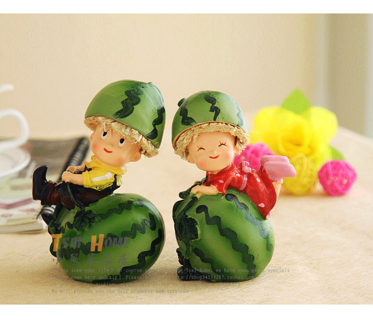 樹脂情侶娃娃 現代時尚工藝擺設擺件結婚禮品家居裝飾品 西瓜太郎