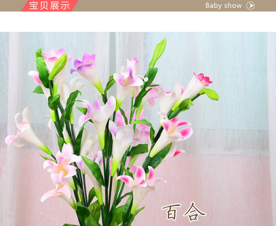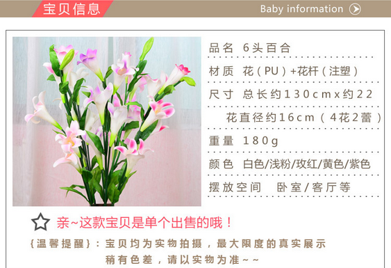 仿真PU百合 手感6頭百合花 假花 落地花藝 仿真花 家居客廳裝飾花