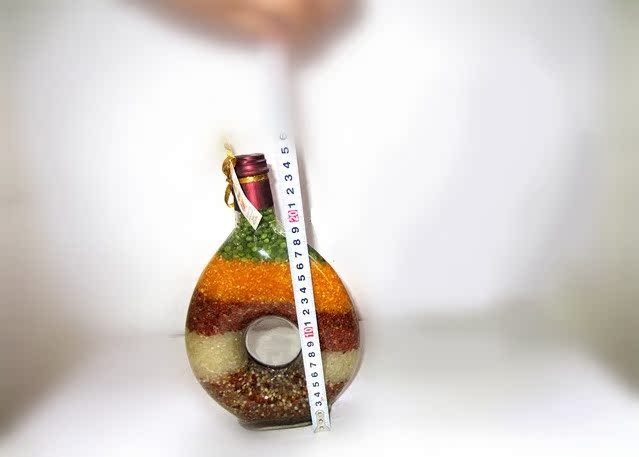 | 本公司大部分商品6一10天到貨。不接急單。急單的客戶請不要下單。感謝諒解與合作! 重要提醒:貨到了一定要當快遞面拆包驗貨,本店不接受包裝完好就簽收哦,發現破損或少貨,請立即與掌柜聯系 尺寸:高:25cm 寬:15cm手工測量,略有誤差,以實物為準 凈重:1.5KG/個 描述:可擺放在吧臺、廚房、書房。。。糧蔬果瓶又名“五谷豐登”,真材實料填充,創意新穎,造型別致,是時尚或田園風格家居擺設的理想之選。其中填充物料主要包括有玉米、綠豆、大米、紅豆、高粱、其他雜糧、油等。天然的色彩搭配,美觀大方,寓意吉祥。歡迎親們選購! 顏色:如圖。每種款式里面的五谷種類和五谷順序可能不一樣。隨機發貨,一定要某種搭配的請留言告之,會盡量滿足,滿足不了的,仍隨機發貨。請介意的親們咨詢清楚再拍哦!謝謝!擺放注意事項:請擺放在陰涼干燥的地方,避免陽光直射。 特別說明"因為密封好的五谷整個浸在油里面的,運輸過程中不可避免的晃動,有可能會導致油溢出瓶子,五谷混雜,層次不清,從而影響到產品的美觀,實屬客觀原因。但我們包裝非常仔細,一般出現這種情況較少,不能接受的朋友請謹慎購買!